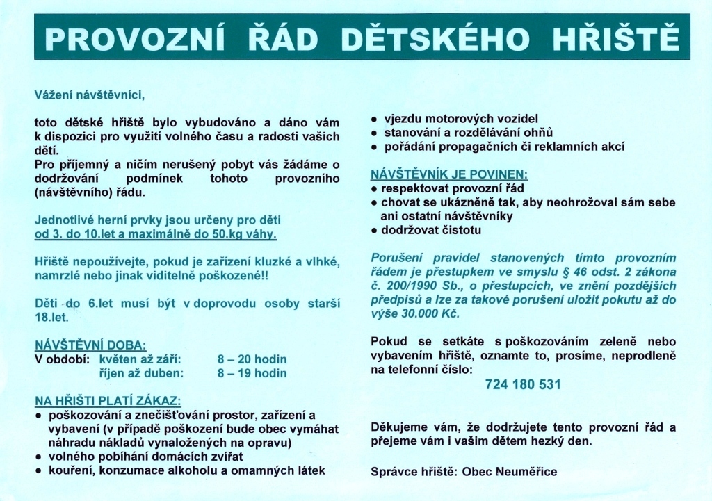 Dětské hřiště za nádražím Provozní řád Fotografie z dětského hřiště za nádražím nám věnoval Pavel Kvacskai.